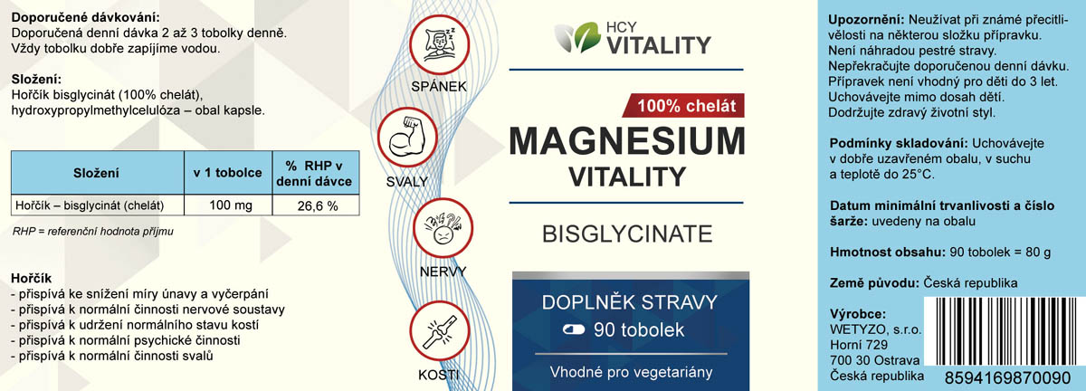 Magnesium Vitality je doplněk stravy s hořčíkem ve formě chelátu.