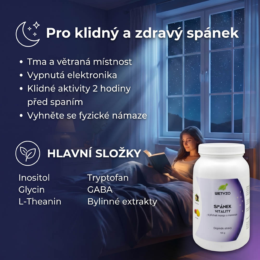 Pokud je pravidlem, že nemůžete usnout, protože se vám honí hlavou různé myšlenky nebo se během noci budíte, tak neváhejte vyzkoušet Spánek Vitality, jehož složení podporuje nejen klidný spánek, ale také snižuje působení stresu a úzkosti během dne.